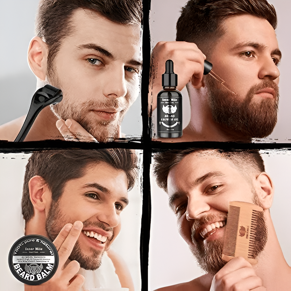 Say goodbye to rough, dry facial hair. The included beard cream deeply moisturises your beard, leaving it soft, shiny, and much easier to style. No more battling dryness or itchiness, the natural ingredients in this kit soothe your skin while nourishing your beard, making it feel and look healthier with each use.
